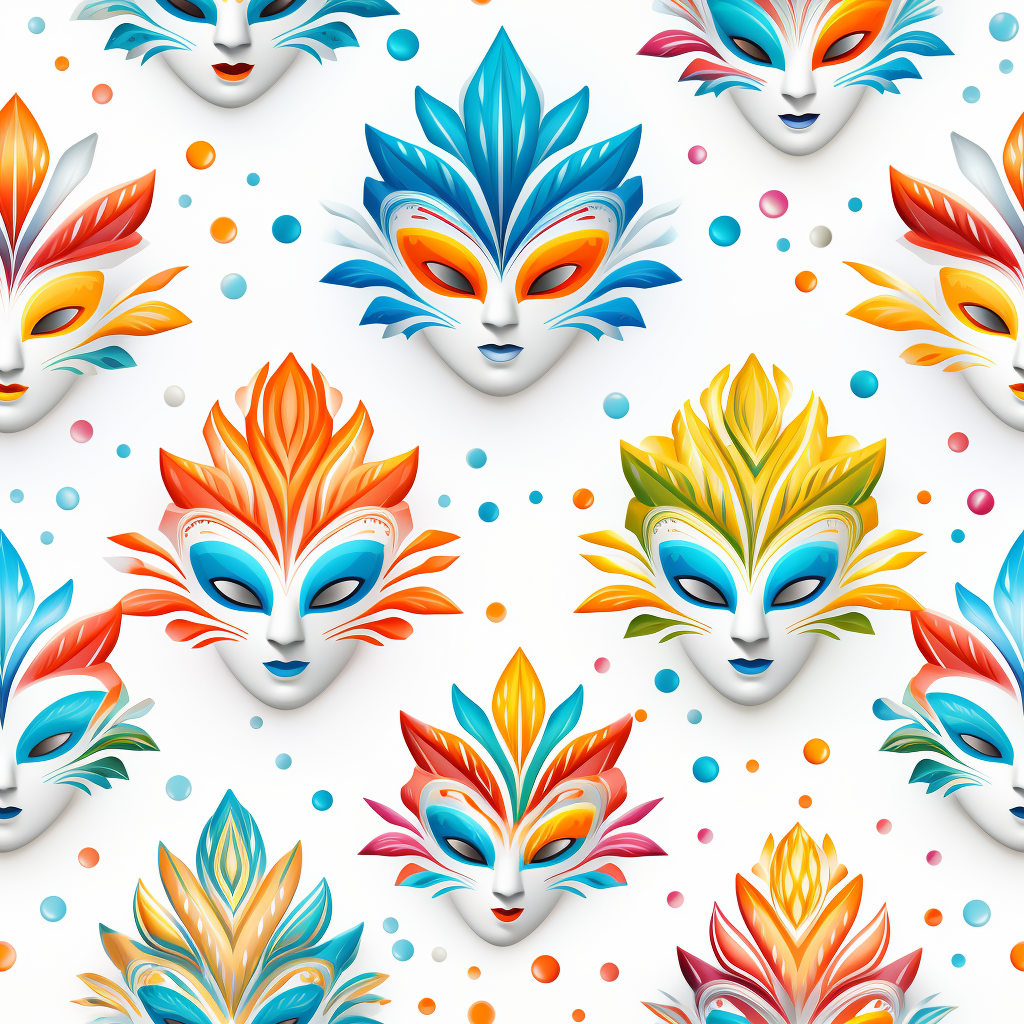 Download for Free!Our Mardi Gras Mask Carnival pattern is a colorful and lively design featuring an array of multicolored masks with various leaf patterns, monochromatic white figures, and colorful fantasy realism. Some masks are even made of crystals, adding a touch of glamour to this carnival look. The orange and blue colors bring a fun and energetic vibe to the design. The masks are set against a white background, similar to the style of Bella Kotak, Anna Dittmann, and Natalia Rak. The detailed background elements, such as the leaf patterns, add depth and texture to the design. The pattern is seamless, making it perfect for large-scale projects. The strong facial expressions and vibrant stage backdrops of the masks bring to mind porcelain and prismatic forms. The design is reminiscent of the lively movement portrayal of Kazuki Takamatsu's work. Overall, our Mardi Gras Mask Carnival pattern is perfect for anyone looking to add a fun and energetic touch to their project!