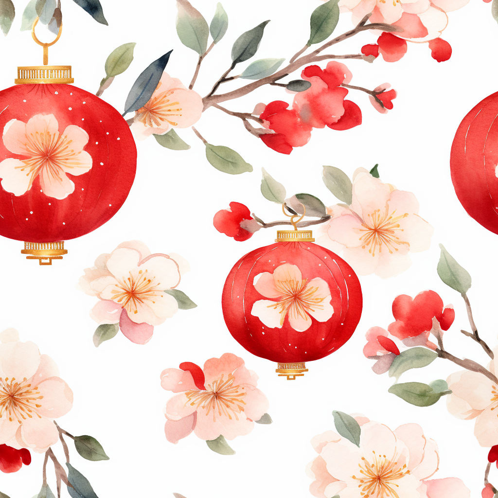 This pattern can be used for various Chinese New Year-themed arts and crafts such as greeting cards, table runners, and decorations. You could also use it as a background for your social media posts to add a touch of festivity. The vibrant stage backdrops made with this pattern would be perfect for Chinese New Year cultural performances. Get creative with Lanterns and Blossoms!