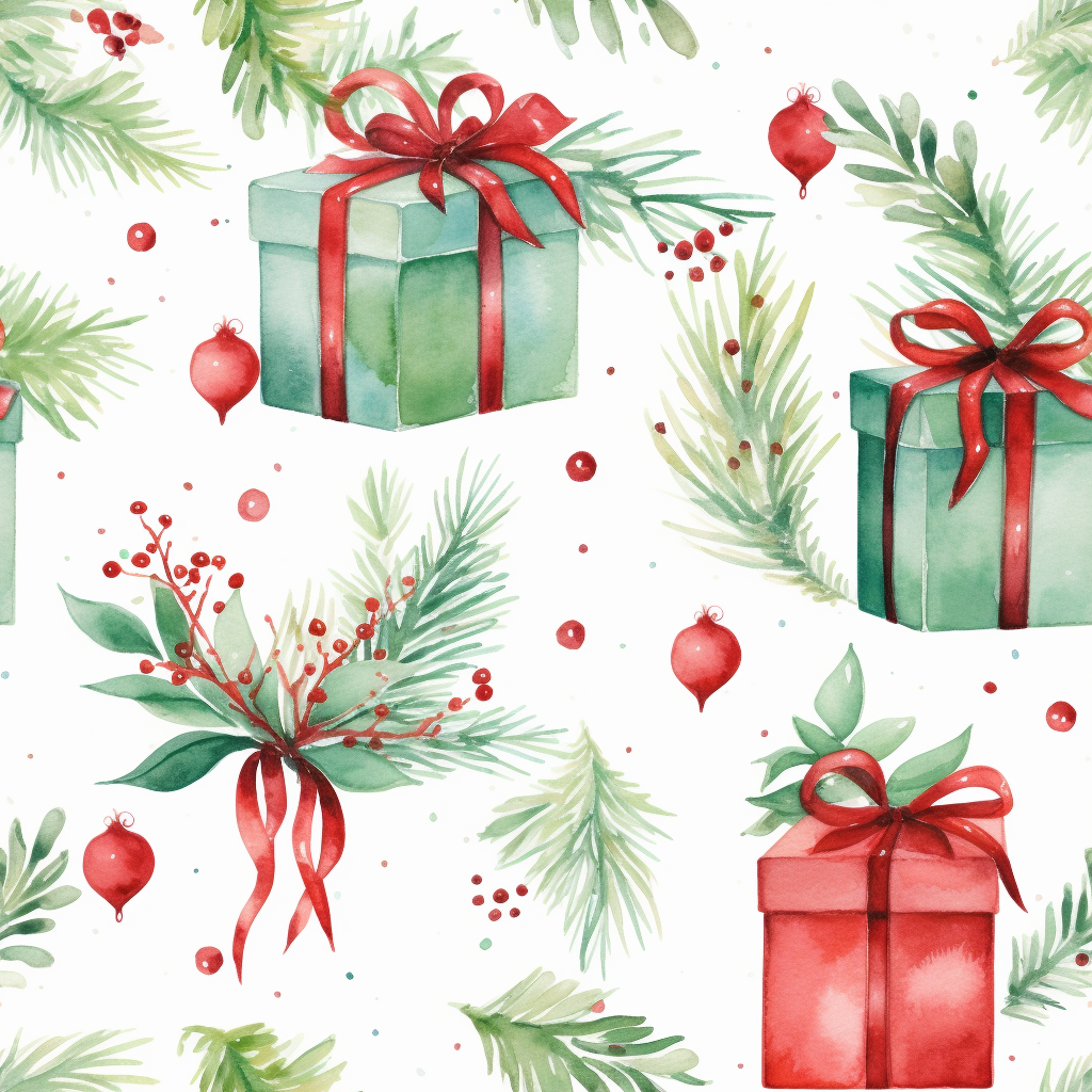 Wrap up your Christmas cheer with our watercolor gifts seamless pattern!
