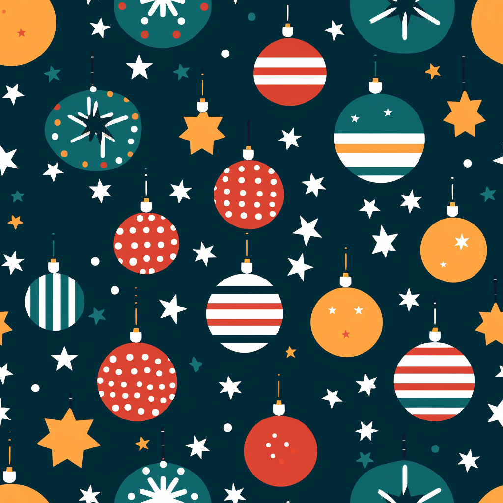 Download for Free!This seamless pattern features Christmas balls in a variety of colors including dark teal, light orange, light red, navy, light yellow, dark sky-blue, crimson, dark green, and white. The pattern is inspired by cosmic themes with bulbous shapes and luminous spheres. The cute and colorful design is reminiscent of pop art with flat colors and playful details. This repeating pattern is perfect for adding some festive cheer to your holiday projects!