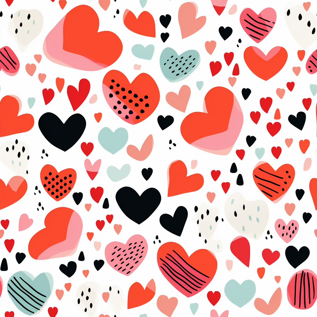 Download for Free!Heartfelt Brushstrokes is a fun and playful pattern featuring colorful hearts in shades of light red, dark black, and light teal. The hearts are created using dynamic brushstrokes, giving the pattern a whimsical and organic feel. The playful shapes and paper cut-outs add to the overall charm of the design. The pattern would work well on a variety of surfaces, from gossamer fabrics to decorative backgrounds. The light teal and light red colors create a dreamy and lovely atmosphere, perfect for spreading love and joy.