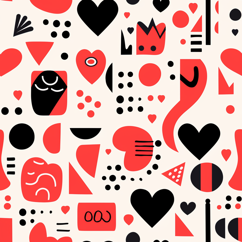 Download for Free!This Valentine's Day pattern features modern and expressive shapes on a light blue background. The color scheme includes a combination of light crimson and dark black, which creates a bold and eye-catching design. The pattern includes irregular organic forms and flat shapes, which are reminiscent of the work of Tarsila do Amaral and Wassily Kandinsky. The graphic elements are both expressive and playful, adding a touch of whimsy to the design. The red, black, and white geometric pattern is perfect for expressing love, and the hand-drawn elements add a personal touch. This pattern is perfect for anyone who loves bright and bold designs!