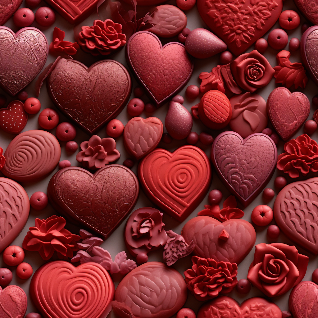 Download for Free!These Valentine hearts are a gorgeous example of relief sculpture style art. Each heart is textured with intricate details that make it stand out beautifully. The flowers and heart-shaped decorations are crafted with naturalistic colors that are both pleasing to the eye and vibrant. The monochromatic color scheme is adorned with floral motifs that are sure to make your heart skip a beat. The textured surfaces and carved surfaces add an abrasive authenticity to the hearts, making them look hyper-realistic. The wallpapers and background images are detailed and layered compositions that are sure to add a touch of romance to your desktop or mobile device. These crimson hearts are perfect for creating photorealistic pastiche art that is sure to impress.