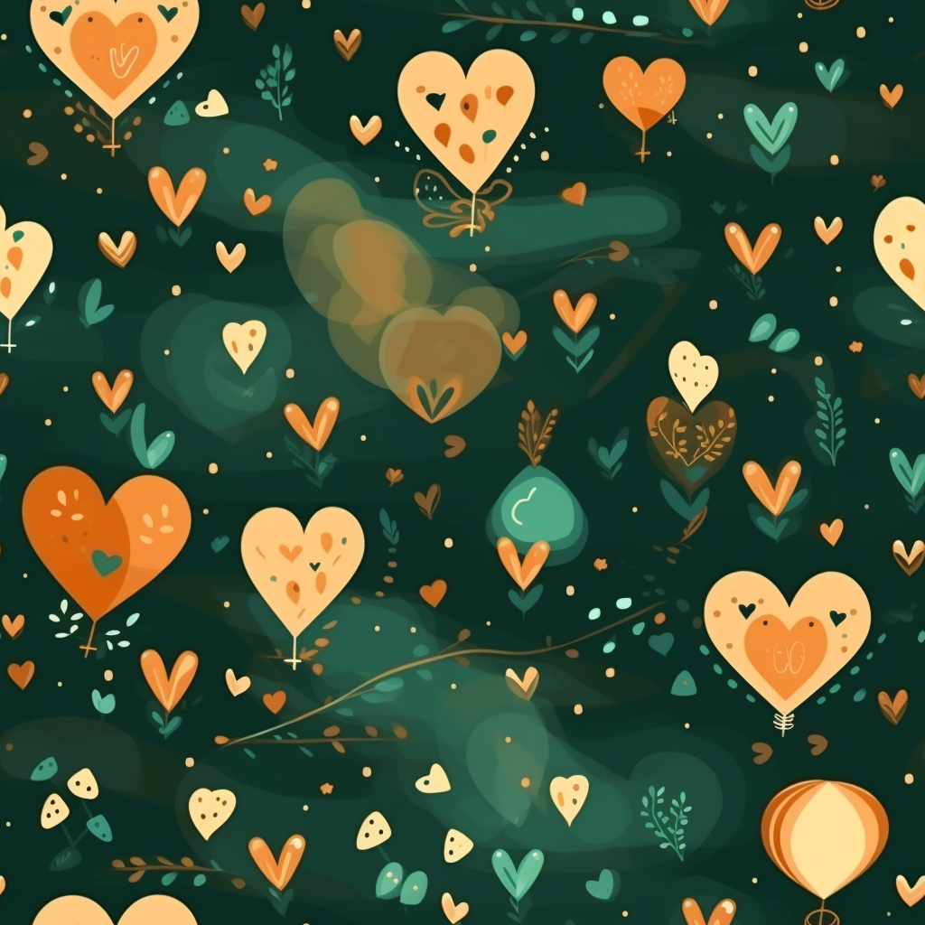 Download for Free!This playful pattern features a green background with cute cartoonish designs of hearts and balloons. The naturalistic depictions of flora and fauna blend perfectly with luminous brushstrokes to create an aerial view that is sure to delight. The whimsical character design adds a touch of fun to this dreamlike composition. The dark orange and dark cyan contrast beautifully with the soft, colorful imagery. This nature-inspired pattern is perfect for anyone who loves the beauty of the outdoors and wants to bring it inside. The seamless pattern by Tadpole on Spoonflower Custom Fabric is a perfect example of how this pattern can be used to create a stunning design.