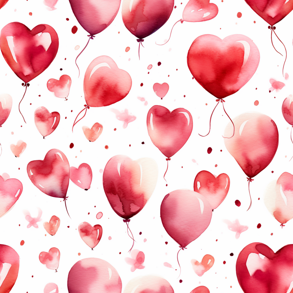 Download for Free!This watercolor pattern is a perfect blend of realism and fantasy, with heart-shaped balloons and romantic roses mixed in a playful and whimsical design. The gossamer fabrics and light colors give it a dreamy and ethereal quality, while the holotone printing and digital enhancements add depth and detail. The pattern features heart-shaped balloons in the style of light red and light crimson on a white background, with playful and whimsical designs in light maroon. The heart-shaped balloons are digitally enhanced to give them a lively and realistic look. The pattern also features romantic roses in the style of Doug Hyde, with cartoonish motifs and mismatched patterns, and joyful celebration of nature in the style of Mandy Disher. This seamless pattern is perfect for creating wallpapers, wrapping papers, or even clothes. Don't miss out on the fun!