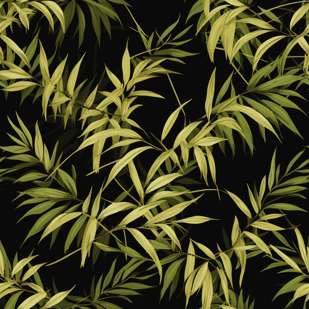 Download for Free!This seamless pattern features bamboo foliage on a black background, with realistic hyper-detail and leaf patterns. The yellow and green colors add a pop of color to the dark background, creating a tropical look and feel. The hand-drawn style of the illustration adds a unique touch, while the repeating pattern allows for versatility in its use. The crosshatching technique used in the illustration adds depth and texture to the image. This pattern would be perfect for anyone looking to add a tropical touch to their home decor or fashion accessories.