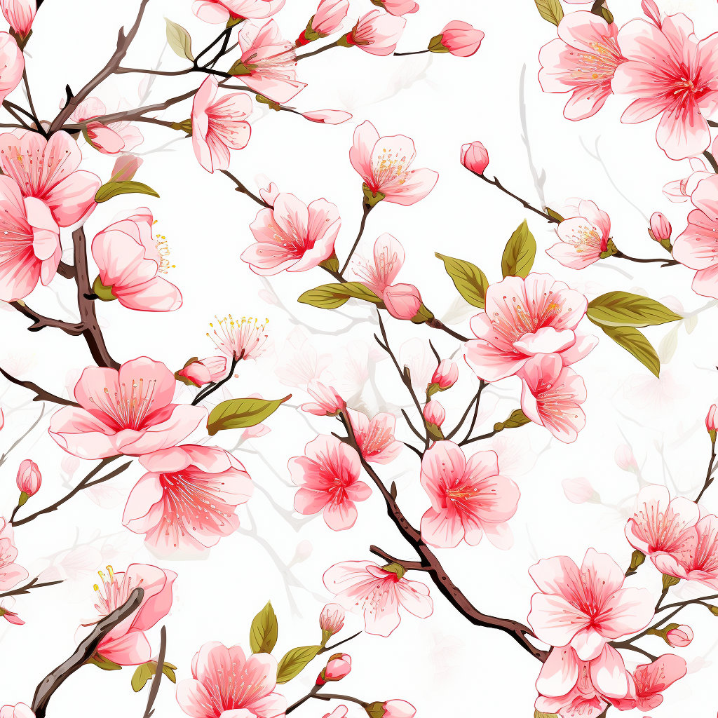 Download for Free!This stunning cherry blossom pattern is a seamless, botanical illustration with a white background that adds a sense of transparency and lightness. It features traditional Chinese style, with light brown and magenta colors that give it a luxurious fabric feel. The twisted branches are depicted with realistic detail, creating a breathtakingly beautiful and intricate design. The artist's skillful use of color schemes and shading creates a sense of depth and dimensionality. The pink flowers are arranged in a seamless pattern, reminiscent of Chinese painting. This pattern is perfect for adding a touch of sophistication and elegance to any project, and is sure to impress with its timeless beauty.