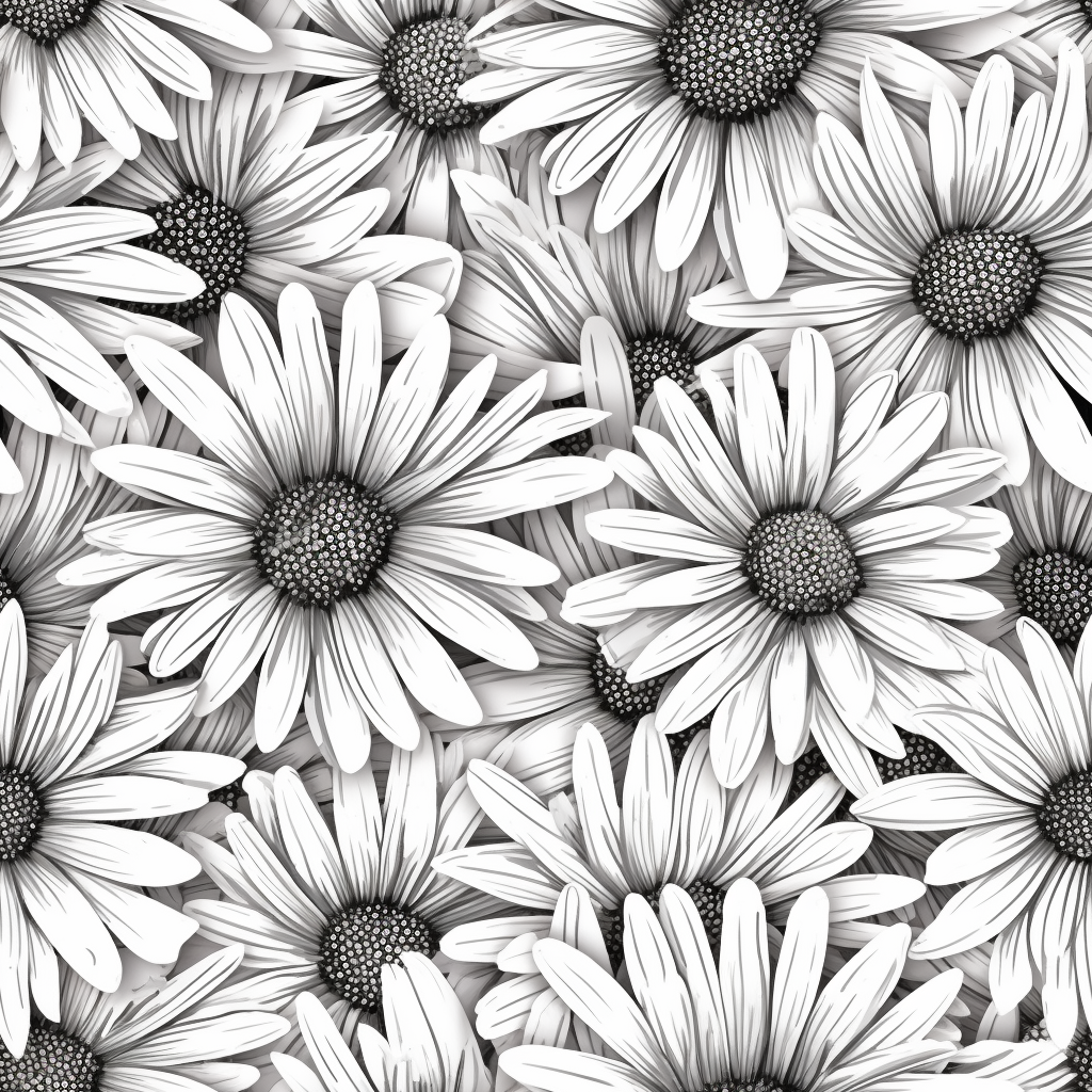 Our Monochrome Daisy Dream pattern is perfect for a range of creative projects. Use it to create a stylish and modern wallpaper, a bold and eye-catching fabric design, or even as a unique and elegant wrapping paper. The possibilities are endless!