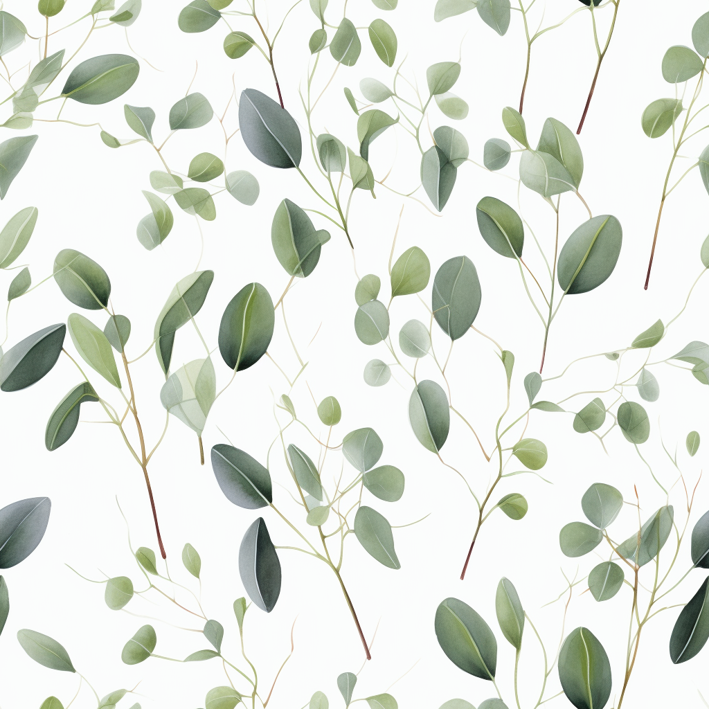 This Eucalyptus Leaves seamless pattern is the perfect way to bring nature into your life! It's transparent and light, with a delicate balance of dark white and light green that creates a calming effect.