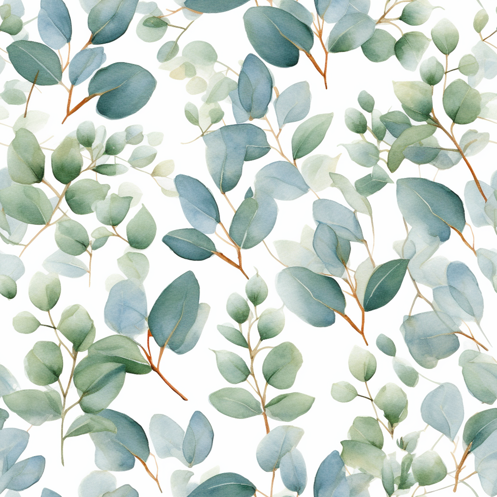 This Eucalyptus Leaves watercolor seamless pattern is perfect for nature lovers and those looking to add a touch of organic material to their art.