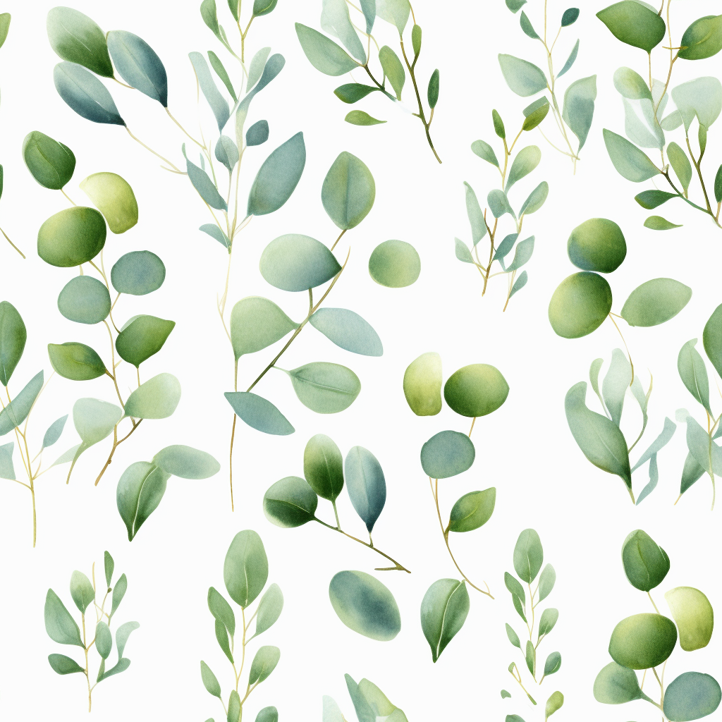 Download for Free!This beautiful watercolor pattern features eucalyptus leaves in light green and light gold on a white background. The leaves are illustrated in a nature-based, floral style and arranged in a seamless, repeating pattern. The pattern is perfect for use on fabric, as the smooth and shiny texture of the leaves would be accentuated on a matte background. The minimalist background color allows the eucalyptus leaves to take center stage and create a joyful celebration of nature. The watercolor branches and flowers with green leaves add to the charm and create a refreshing vibe. The pattern is inspired by pastoral charm and would be perfect in any home or office setting.