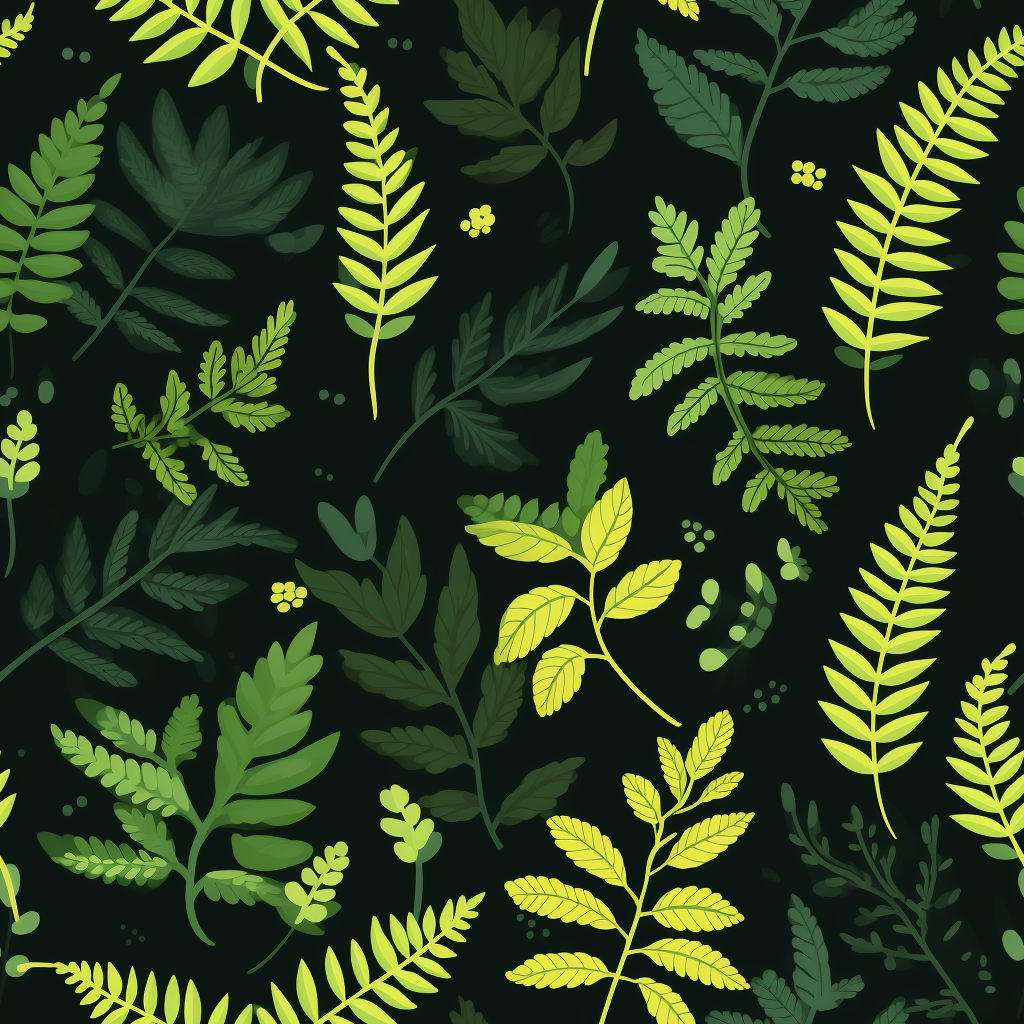 Download for Free!This seamless pattern features beautiful fern leaves in shades of light yellow and dark green, set against a black background. The leaves are rendered in a free brushwork style that gives them a natural, organic look. The pattern is seamless, meaning it can be repeated infinitely without any visible seams, making it perfect for use as wallpaper or as a background for web or print designs. The fern leaves are carefully arranged in a modular pattern that creates a sense of depth and texture. This pattern is a great example of the forestpunk style, which is characterized by its natural shapes and textures, as well as its use of organic materials and concise brushwork. With its high resolution and layered textures, this fern leaves seamless pattern is sure to add a touch of natural beauty to any space.