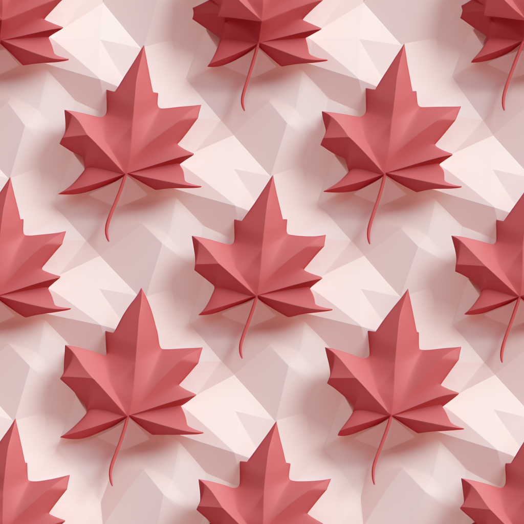 Download for Free!This polygonal Maple Leaf pattern, reminiscent of the style of Bryce 3D, is a repeating pattern featuring light white and light crimson colors. The optical illusions created by the pattern make it a true work of art. The pattern is also reminiscent of the work of Paul Corfield and Serge Najjar, with its nature-based patterns, three-dimensional effects, and flower patterns. The delicate paper cutouts of the pattern are achieved through the use of folded planes and the combination of geometric shapes. The red leaves used in the abstract pattern, created in the style of low poly, are set against muted tones that add to the surrealism of the piece. This pattern is a true masterpiece that is not to be missed!