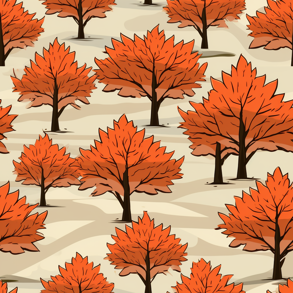 Fall in love with our new seamless pattern featuring orange trees, spiky mounds and autumn foliage. It's the perfect blend of pop art and realism!