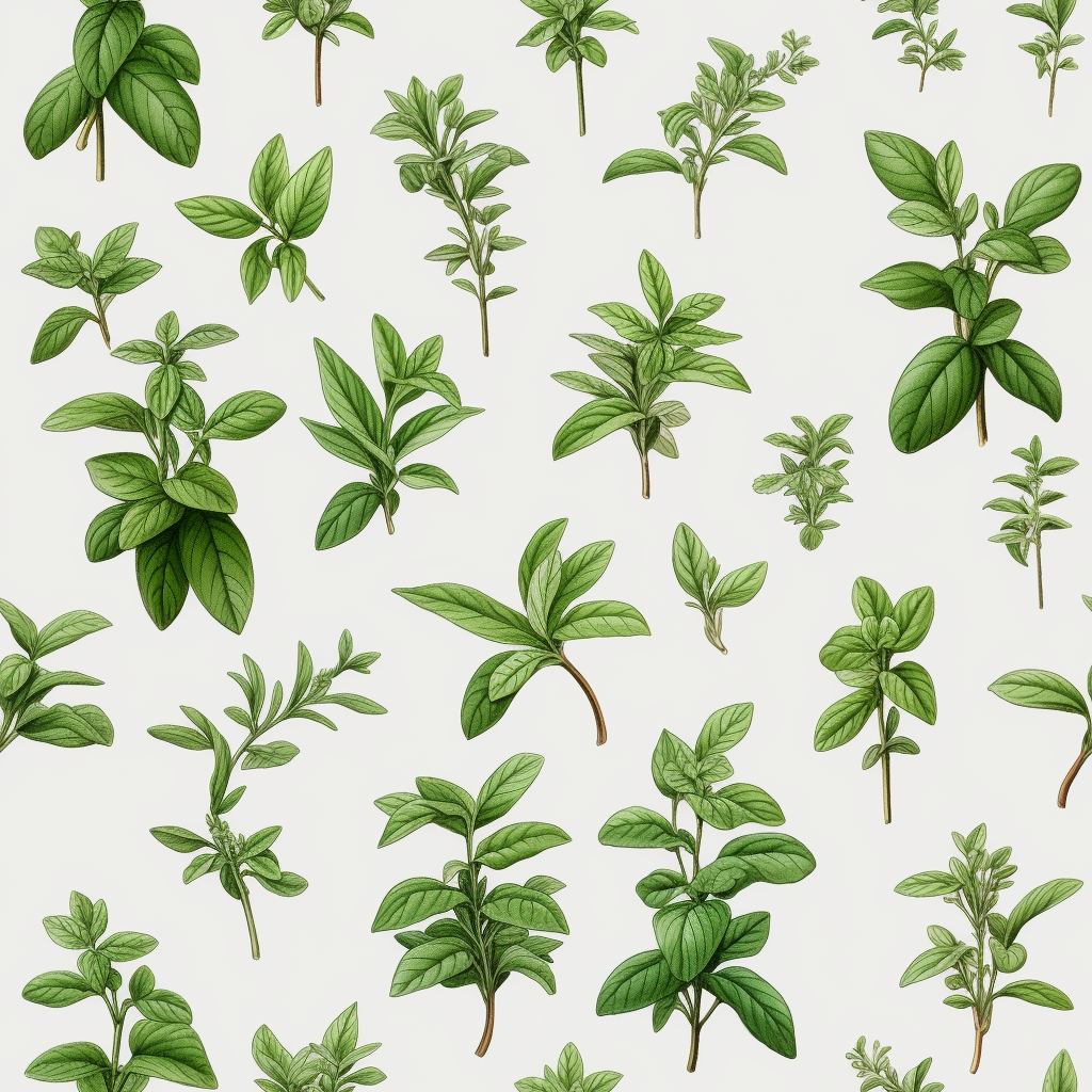 Download for Free!This pattern features a variety of herbs and leaves arranged in a seamless design. The light green and light brown colors give the pattern a natural and organic feel, while the realistic details add depth and texture. The design is inspired by historical illustrations from the 19th century, and the soft outlines and layered gestures give it a vintage vibe. The pattern is perfect for porcelain dishes or home decor, and the high resolution makes it ideal for printing. The cloves of thyme, mint, parsley, and anise are arranged in a way that is reminiscent of illusory wallpaper portraits with classical motifs and themes. The sparse backgrounds give the design a minimalist feel, while the detailed drapery and intertwining materials add complexity. The pattern is available in the style of Ferrania P30 and Dau al Set. Fun fact: Dau al Set was a Spanish art movement that emerged in the late 1940s and was influenced by surrealism and abstract art.