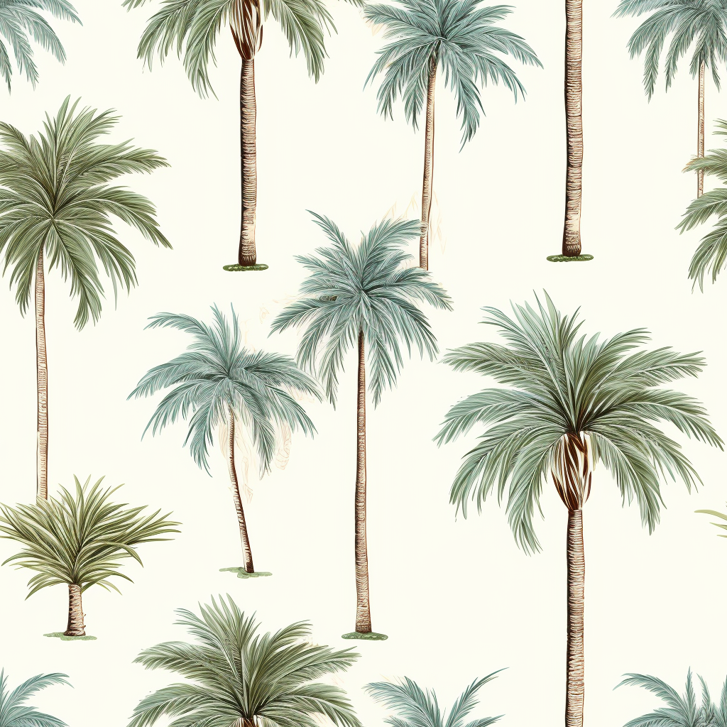 Download for Free!Our Palm Trees pattern is a detailed and realistic botanical illustration of palm trees on a variety of backgrounds. The trees are rendered in fine detail and heavy shading, giving them a naturalistic appearance that is sure to impress. The pale colored backgrounds range from white to green to beige, and some even have tonal colors and luxurious fabrics like maroon and blue. The pattern features a mix of coastal scenery and southern countryside, making it perfect for any space that needs a touch of nature. The pattern is rendered in the style of mid-century illustrations, with a playful watercolor effect that adds a touch of whimsy to the design. The pattern is striped and cinquecento, and some of the trees are shown in a pattern that is reminiscent of realistic landscapes with soft, tonal colors. Overall, our Palm Trees pattern is a beautiful and versatile design that is sure to add some interest to any space.