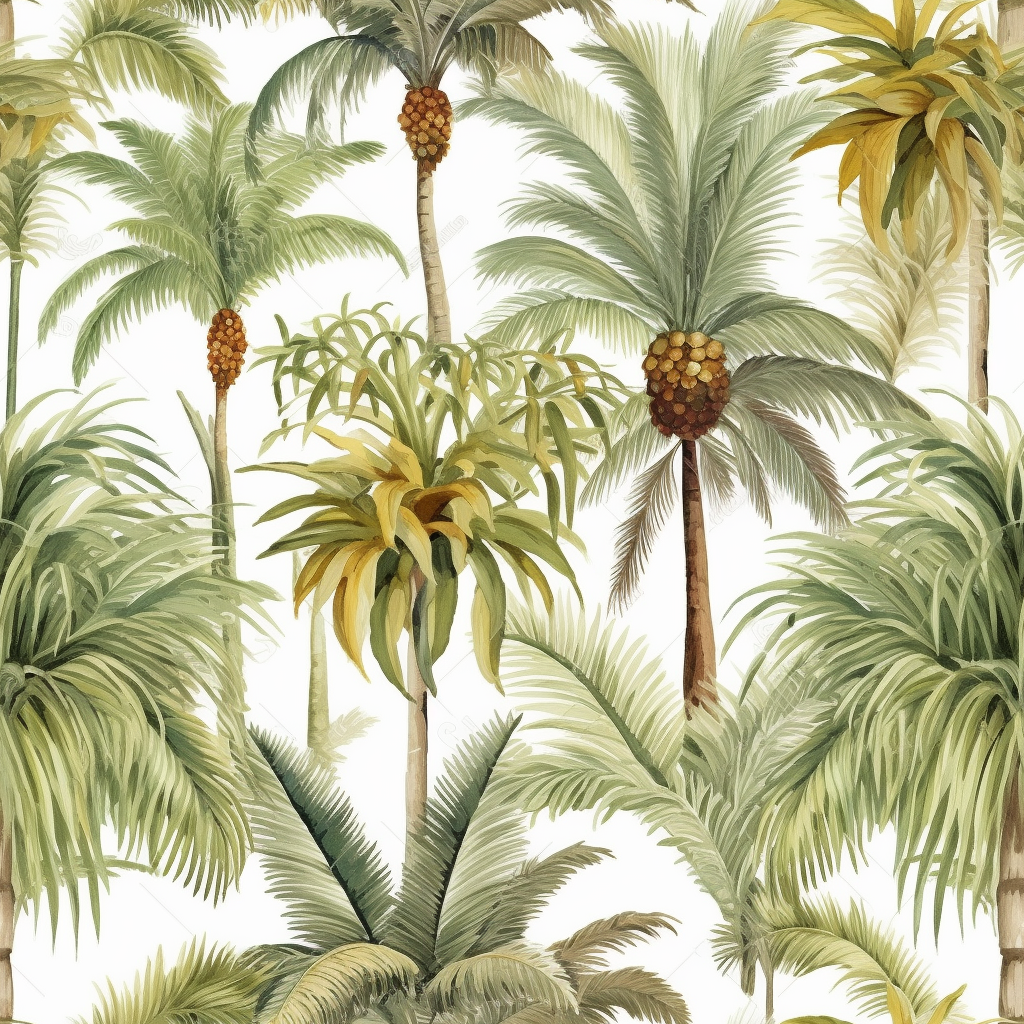 Download for Free!Bring a touch of the tropics to your home with this stunning palm tree pattern. Against a crisp white background, green and yellow palm trees sway in the breeze, creating a luxurious drapery effect. The natural and man-made elements combine in a faux naïf style, with detailed landscapes and atmospheric watercolours that transport you straight to a lush jungle. The heavy shading and soft watercolours create a colourful, detailed tableau that is sure to delight. At 3840x2160, this wallpaper pattern is perfect for creating a dramatic statement wall that will transport you to a sunny paradise. The style is reminiscent of artists like Anne Dewailly and Wiesław Wałkuski, with a traditional landscapes and junglecore vibe. Opulent fabrics, soft watercolours, and lively tableaus combine to create a pattern that is both luxurious and playful.