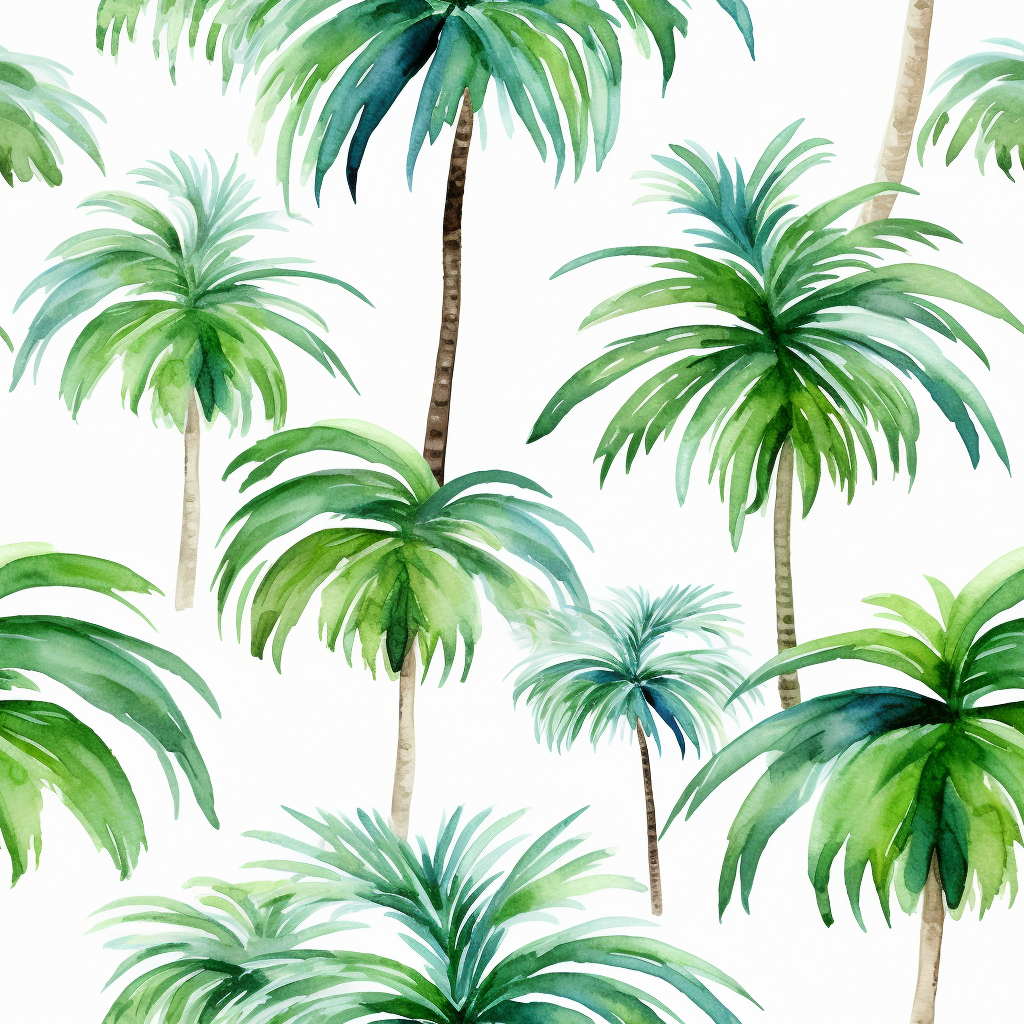 Download for Free!Get lost in the tropical vibes with the "Tropical Breeze" pattern. This seamless watercolor pattern features palm trees and coconuts on a white background, inspired by the lush, green environment of the tropics. The pattern is perfect for creating a luxurious feel in your home decor or adding a touch of coastal scenery to your designs. The watercolor effect adds a touch of artistry to the pattern, making it a standout piece. With its versatile design, it can be used for everything from curtains to phone cases. Experience the beauty of the tropics with this stunning pattern!