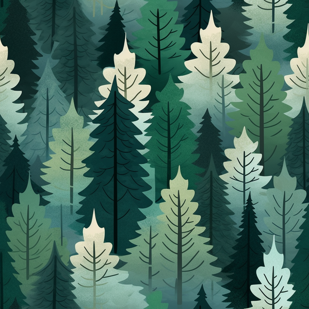 Download for Free!Immerse yourself in the tranquility of Pine Forest, a seamless forest scene featuring a variety of pine trees and branches in green and gray. The bold graphic illustrations are complemented by atmospheric color washes, flat shading, and patterns that create a layered and atmospheric landscape. The dark teal and light gray color scheme is perfect for editorial illustrations and nature-inspired imagery. The playful cartoonish illustrations and the richly detailed backgrounds will add a touch of wilderness to any design. Whether you're looking to create a cabincore vibe or just want to add a touch of woodsy charm, Pine Forest is the perfect pattern for you!