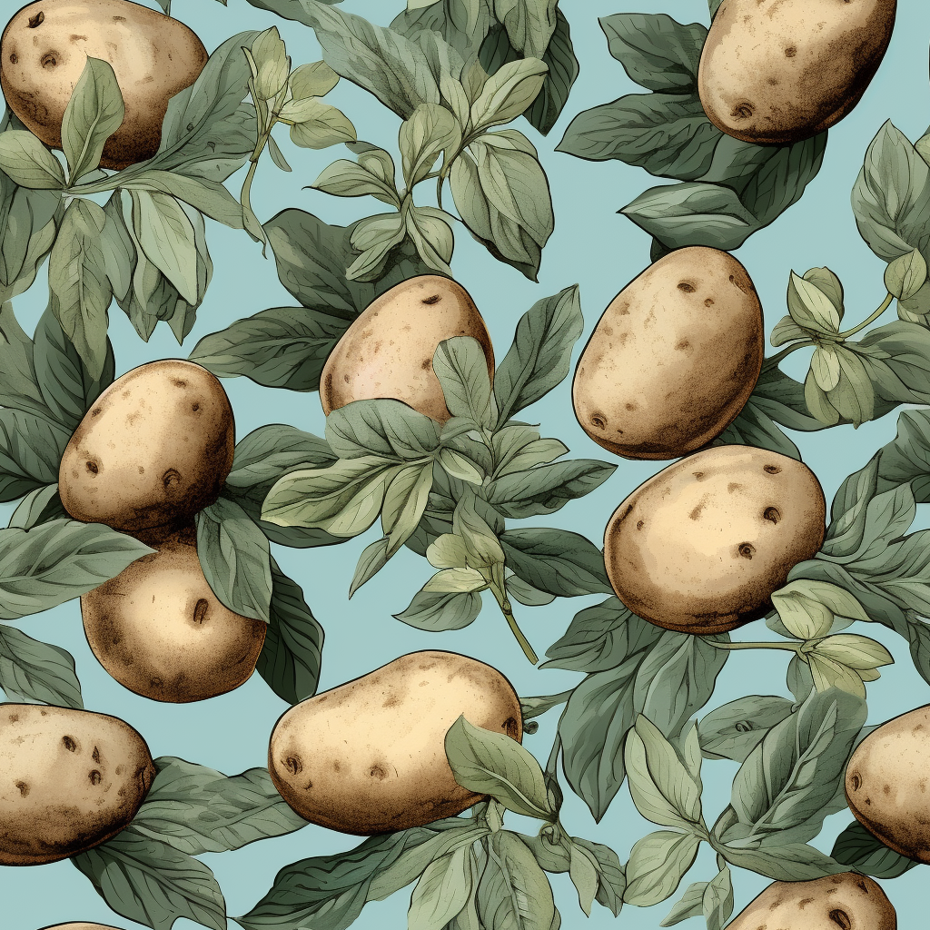 This pattern is perfect for adding a touch of nature to your kitchen with a set of matching placemats or a beautiful apron. You can also use it to wrap your gifts in a unique and eco-friendly way, or to create a cozy and inviting atmosphere in your living room by upholstering your pillows or armchair with it. Let your imagination take root and create something truly spudtacular!