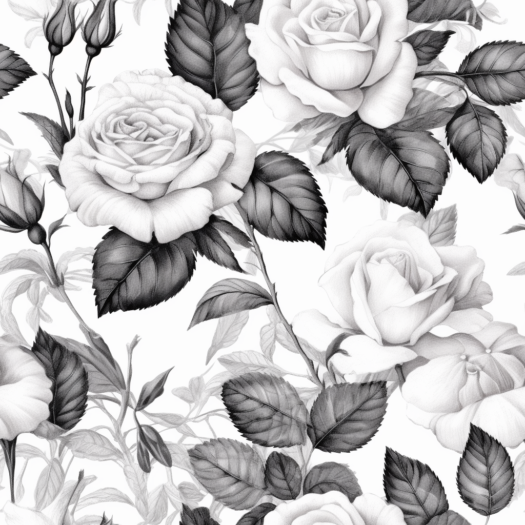 Download for Free!This stunning monochromatic rose illustration is a true work of art! The detailed shading and precise printing techniques used give the roses a lifelike appearance, making them appear as if they were plucked straight from a garden. The use of a monochromatic color scheme adds to the dramatic effect of the illustration, making it a true standout piece. At the same time, the hyperrealistic style of the roses lends a romantic and dreamy quality to the piece, evoking feelings of love and passion. This nature-based pattern would be perfect for use on wallpaper, luxurious fabrics, or even large-scale murals, making it a versatile and timeless addition to any space!