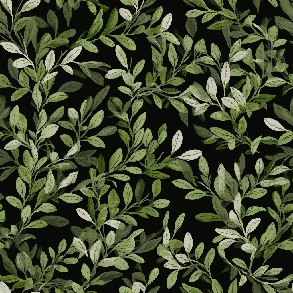 Download for Free!This intricate seamless pattern features delicate green leaves and twisted branches set against a dramatic black background. The foliage is incredibly detailed, with precise brushwork and realistic detail that creates a sense of depth and dimension. The earth tone color palette includes light greens and grays, which add to the natural feel of the pattern. Whether you're using it for wallpaper or fabric, this pattern is sure to impress with its beautiful and intricate design.